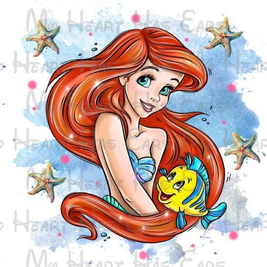 Ariel the little mermaid watercolor starfish image png digital file sublimation print t-shirt design