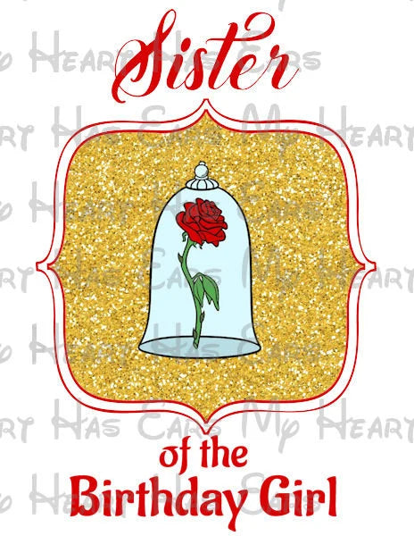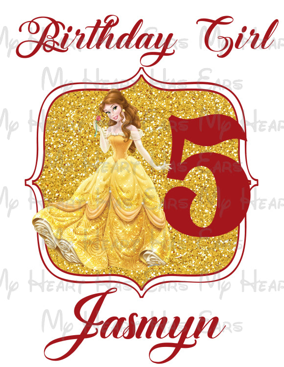 Belle Beauty and the Beast Glitter birthday girl image PERSONALIZED PNG digital file sublimation print t-shirt design