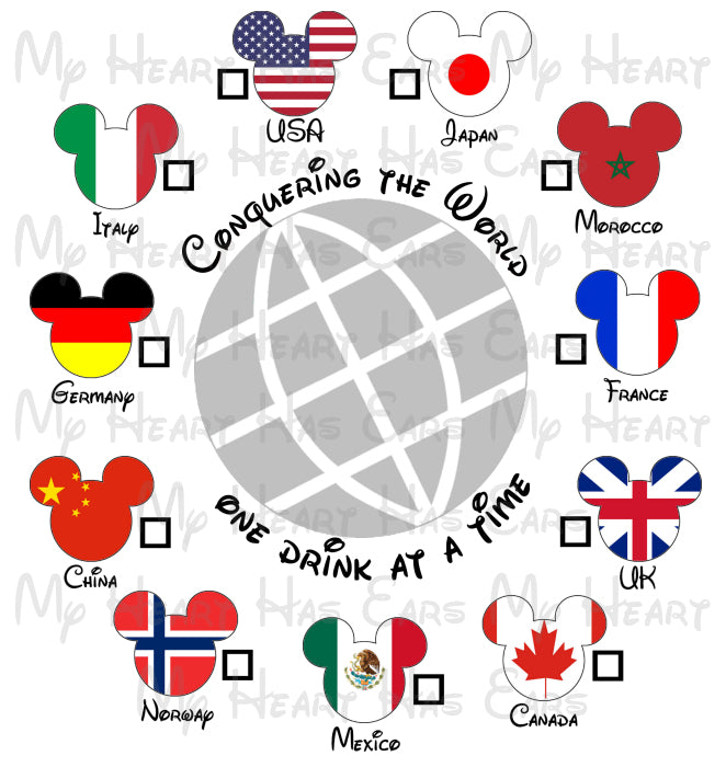 Epcot Conquering the world one drink at a time countries image png digital file sublimation t-shirt design