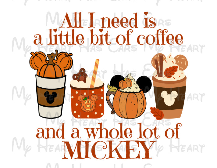 Fall Autumn All I need is a little bit of coffee and a whole lot of Mickey Mouse image png digital file sublimation print decal t-shirt design