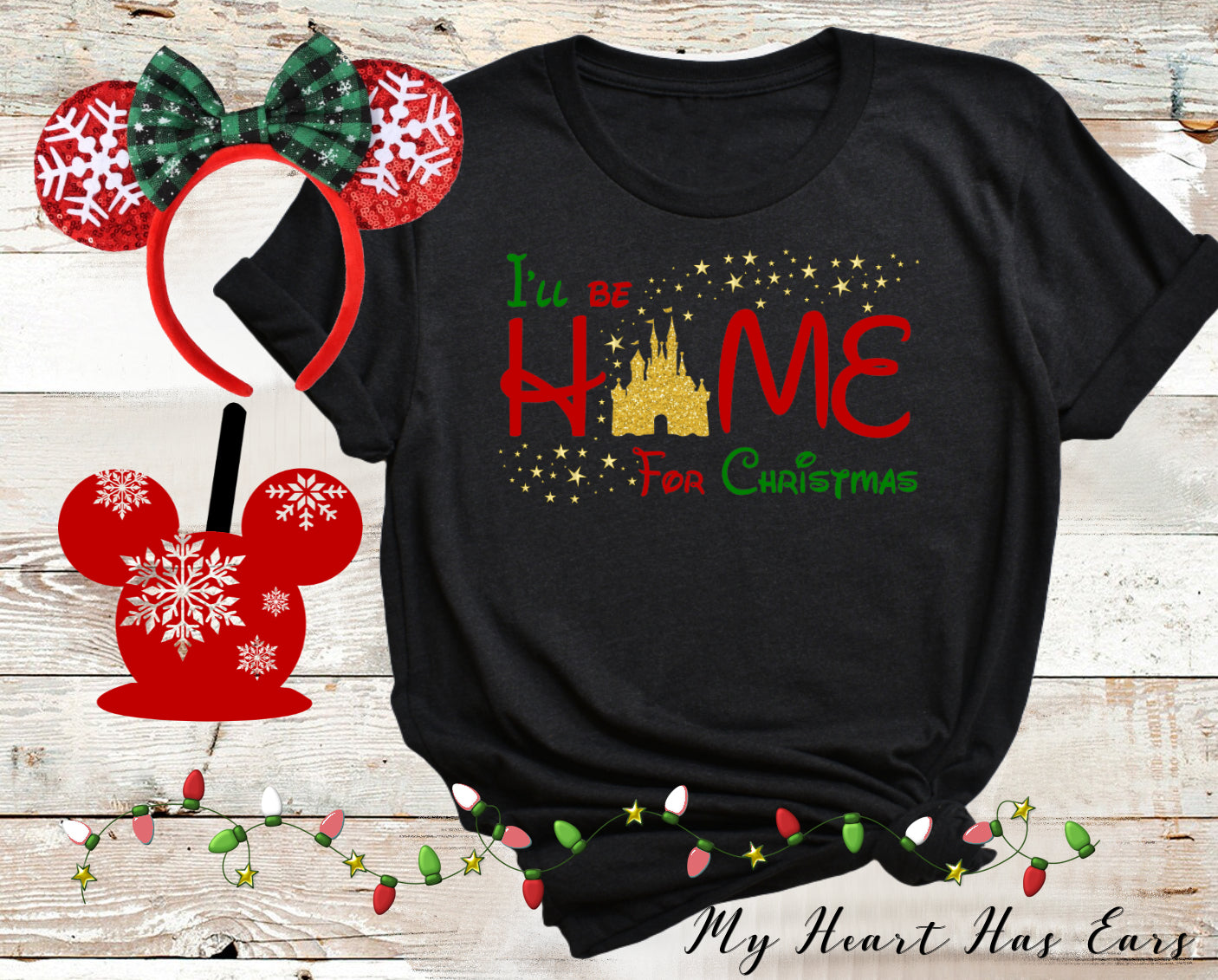 I'll be home for Christmas Disney Cinderella castle image png digital file sublimation print t-shirt design
