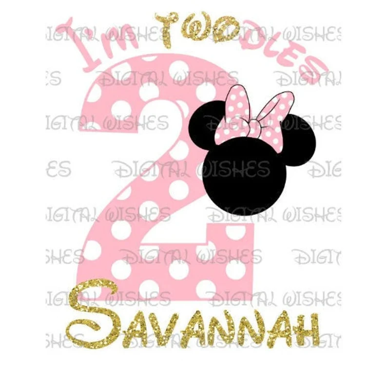 I'm Twodles hot pink and gold Minnie Mouse ears head Birthday girl image png digital file sublimation print t-shirt design