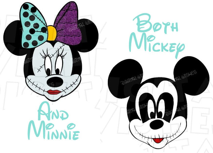 Jack Skellington and Sally Mickey Minnie Mouse head image png digital file sublimation print t-shirt design