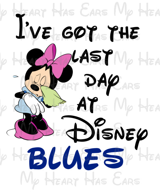 Last day at Disney blues Minnie Mouse sad vacation image png digital file sublimation print t-shirt design