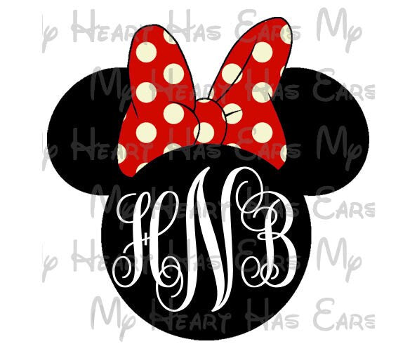 Monogram Minnie Mouse ears head image png digital file sublimation print t-shirt design
