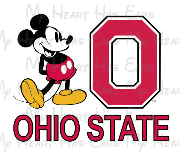 Ohio State University block O with Classic Mickey Mouse image png digital file sublimation print decal t-shirt design