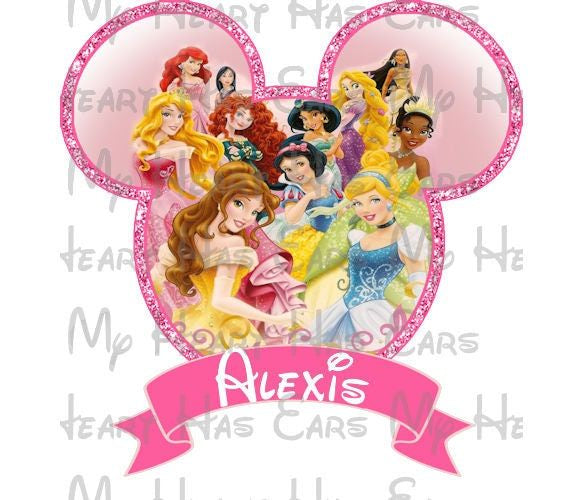 Princess Mickey Mouse glitter personalized name image png digital file sublimation print t-shirt design
