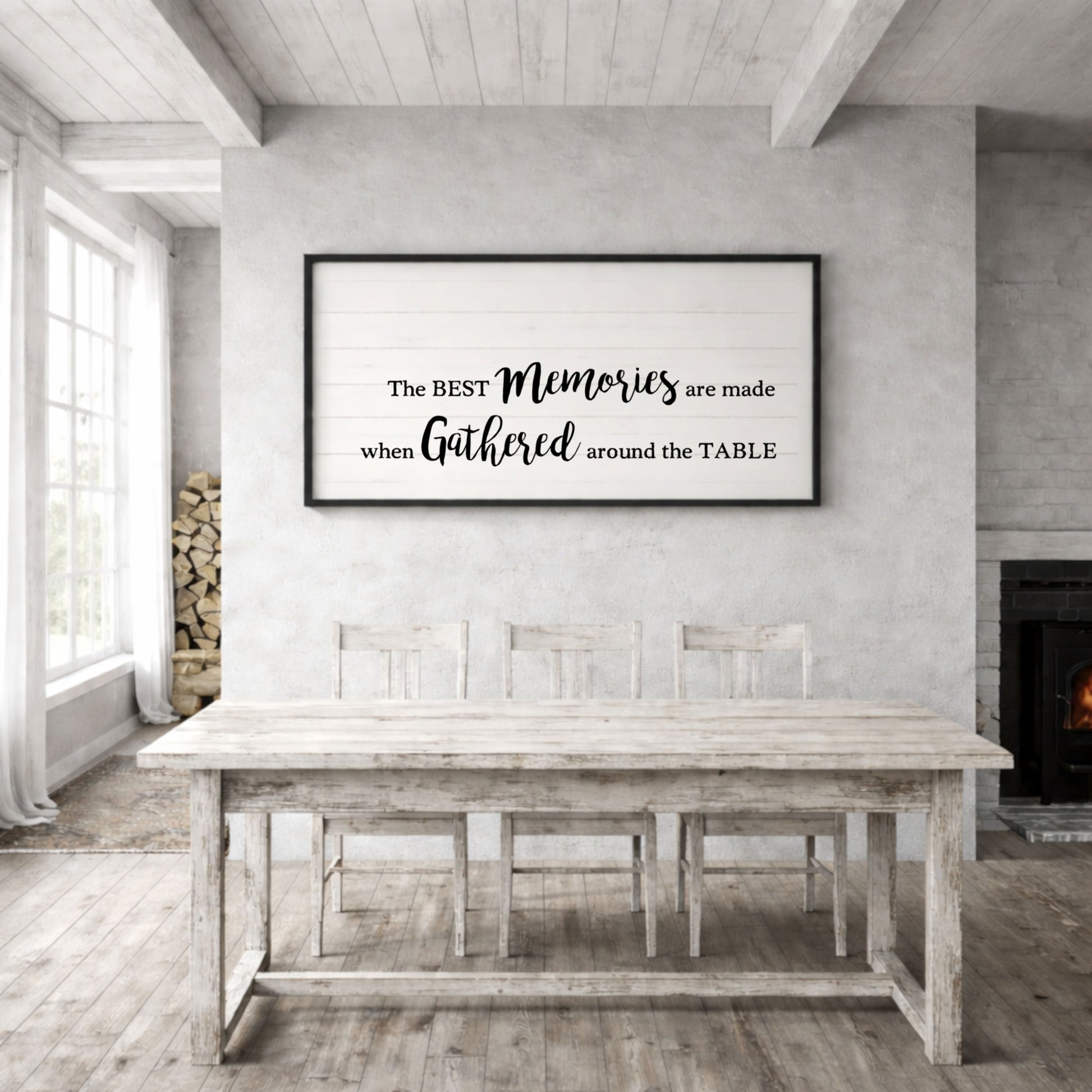 The Best Memories Are Made When Gathered Around the Table. This farmhouse-inspired wall art brings warmth and character to your dining space with its timeless design and inviting message. Perfect for creating a cozy, lived-in aesthetic, this digital download prints beautifully on standard paper sizes and frames seamlessly into your existing décor. Ideal for those who value family gatherings and meaningful connections. Download instantly and print whenever you're ready—no waiting for shipping.